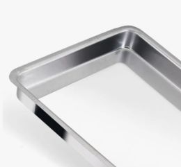 Tabuleiro baixo fabricado em alumínio de alta resistência, ideal para assar, servir ou armazenar alimentos em buffets, restaurantes e padarias. Medidas: 29x20x3cm. Cor: Prata. Tags: forma retangular, bandeja, assadeira, recipiente.
