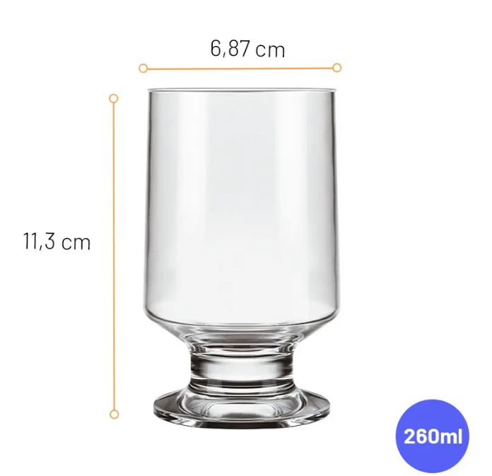 Taças de vidro para vinho, 260ml cada, caixa com 24 unidades, resistentes e elegantes, ideais para bares e restaurantes.