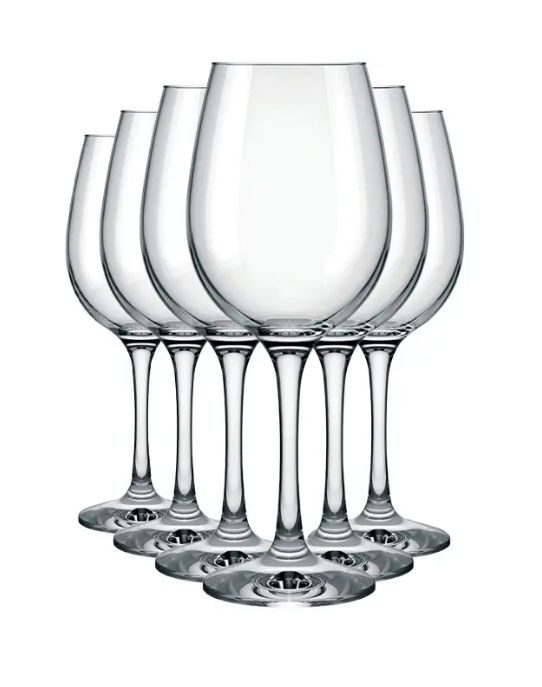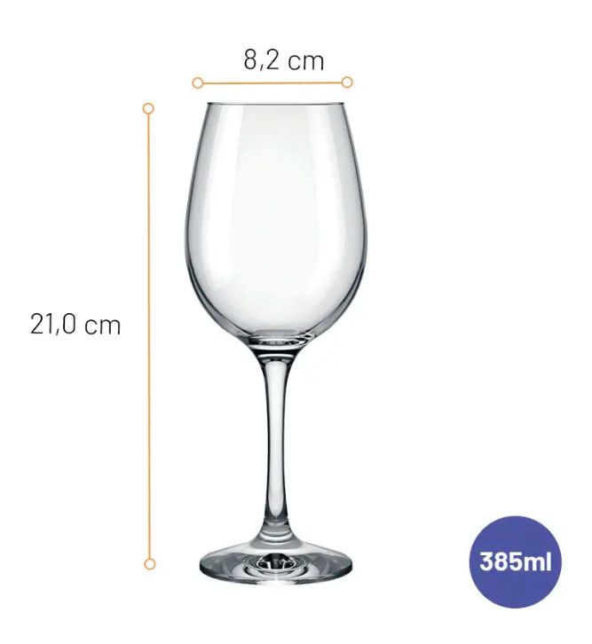 Taça para vinho de vidro Barone 385ml, ideal para servir vinhos em celebrações. Caixa com 12 unidades.