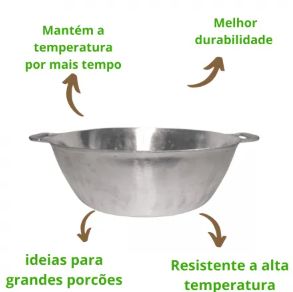 Tacho de alumínio 45cm, capacidade 17 litros, ideal para hotéis e cozinhas industriais. Resistência e durabilidade para alto desempenho.