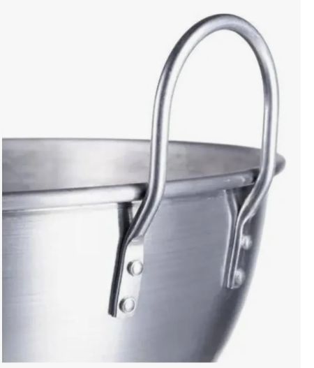 Tacho escorredor em alumínio, furo grosso, diâmetro 45cm. Indicado para escorrer massas, vegetais e alimentos fritos em cozinhas industriais e domésticas. Material resistente. Cor: alumínio. Palavras-chave: escorredor, tacho perfurado, utensílio cozinha.