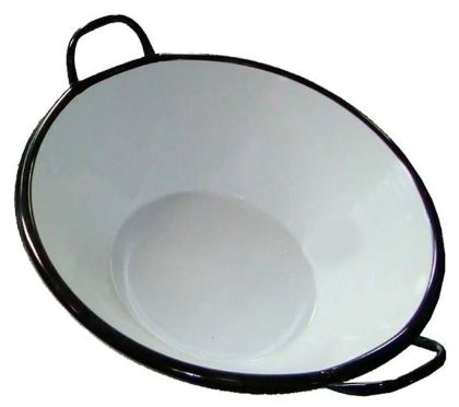 Tacho esmaltado de 40cm para fritura de pastéis, resistente e fácil de limpar. Ideal para uso doméstico e profissional.