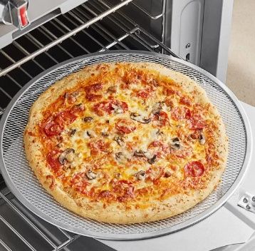 Tela de alumínio reforçada para pizza, 50cm, resistente, facilita o preparo e assamento uniforme.