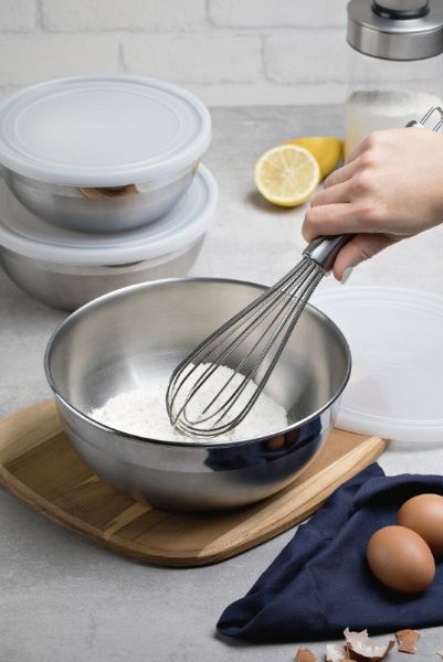 Tigela Tramontina em aço inox com tampa plástica, resistente, higiênica e fácil de limpar. Perfeita para uso doméstico ou profissional, para preparo, mistura, armazenamento e serviço de alimentos. Capacidade aproximada: 3 litros. Cor inox/prata com tampa plástica branca. Tags: bowl, saladeira, multiuso, recipiente, utensílio de cozinha, recipiente para alimentos.