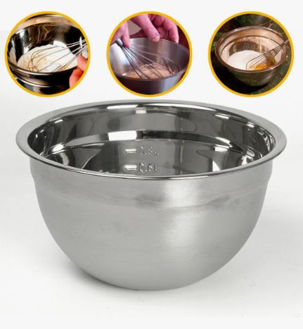 Tigela Mixing Bowl Kehome em aço inox, diâmetro de 18cm. Ideal para preparo, mistura de massas, saladas e receitas em geral. Material resistente, fácil de limpar. Cor: inox. Tags: bowl, tigela de preparo, recipiente de inox, utensílio culinário.