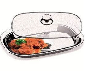 Travessa em aço inox Brinox Lyon, 35x24x4cm, ideal para servir refeições com elegância e praticidade.