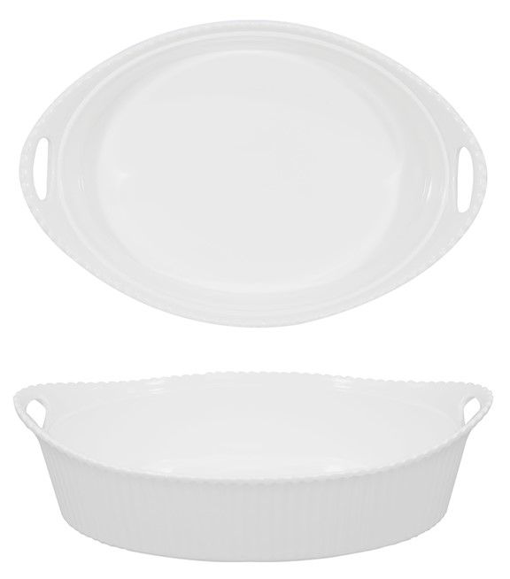Travessa oval fabricada em melamina resistente, com alças para facilitar o manuseio. Perfeita para servir alimentos em restaurantes, buffets ou uso doméstico. Medidas: 16x11x4cm. Cor branca. Tags: travessa, bandeja oval, melamina, servir alimentos, Bestfer.