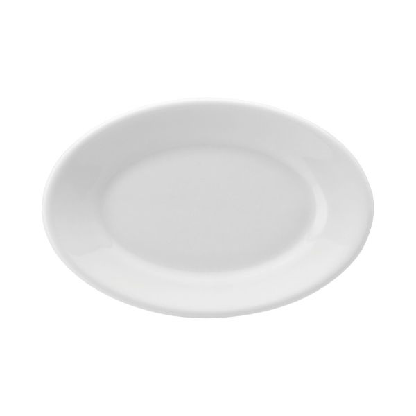 Travessa rasa fabricada em porcelana de alta qualidade, indicada para restaurantes e hotéis. Medidas: 23cm de comprimento. Cor branca clássica. Sinônimos: travessa porcelana, prato servir, bandeja plana. Uso profissional e doméstico.
