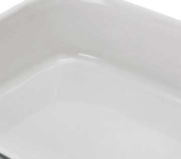 Travessa refratária retangular em vidro martelado, resistente a altas temperaturas. Perfeita para assar, servir e armazenar alimentos em restaurantes, hotéis ou residências. Dimensões: 30x21x7cm. Cor: Branca. Tags: travessa refratária, assadeira de vidro, recipiente para forno, servir alimentos, Certa.