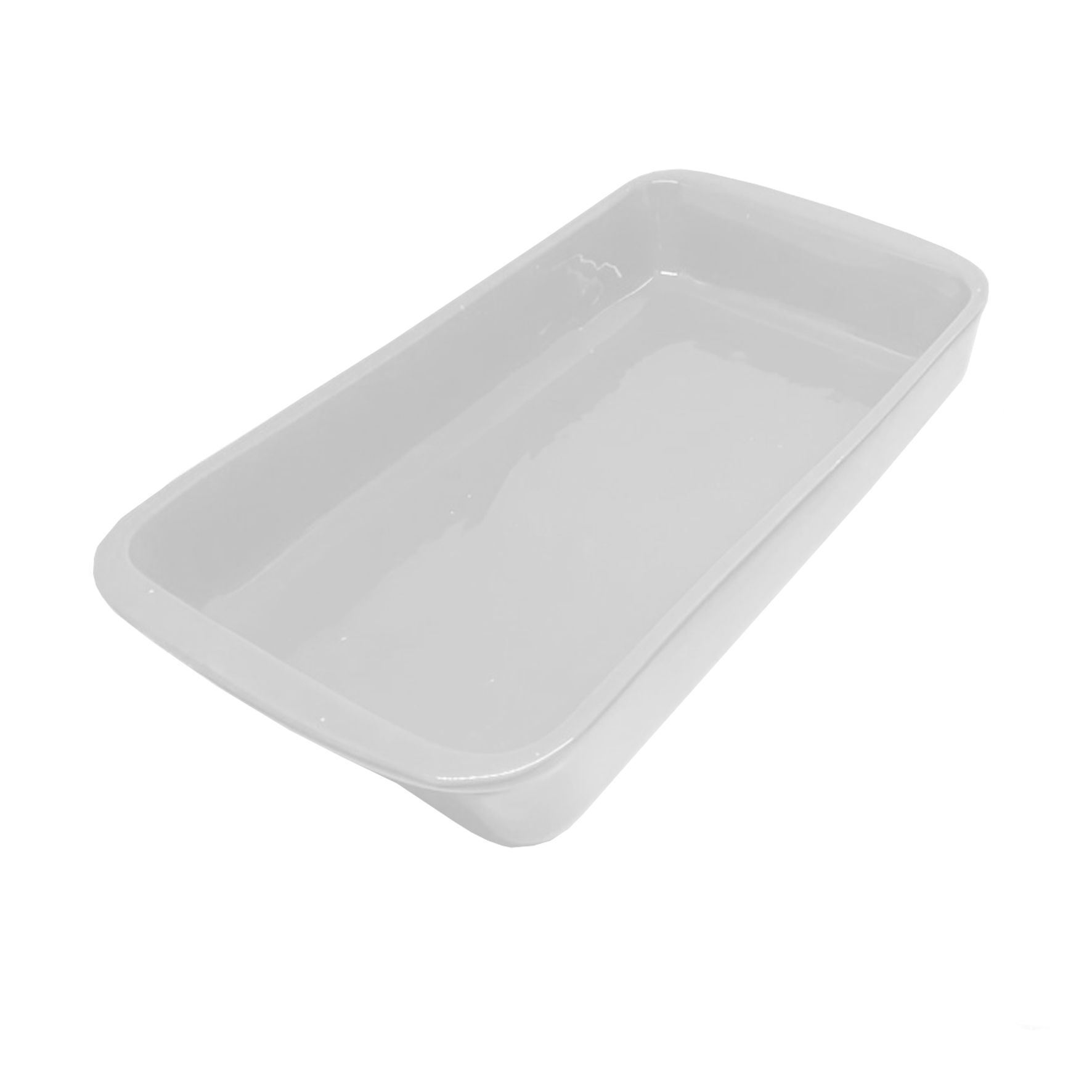Travessa retangular de vidro Geni 28x15x5cm branca, ideal para servir refeições e sobremesas com elegância.